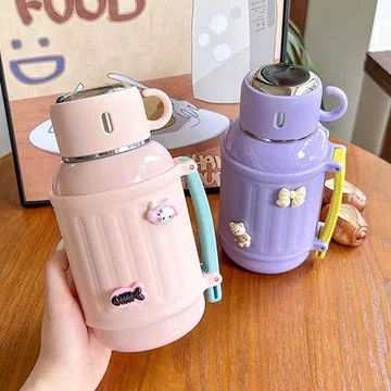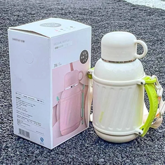 Water bottle for kids, 800ml, for elementary school kids, girls, boys, direct drinking, with cup, with strap, with tea strainer, shoulder strap, cup drinking, non-slip, stainless steel bottle, heat retention, cold retention, double layer vacuum, thermos, shoulder strap
