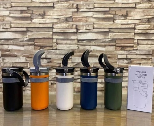 Travel Tumbler with Straw Lid and Handle 600 ML Travel Coffee Mug Portable Vacuum Stainless Steel Reusable Insulated Thermos Flask for Hot & Cold Drinks/Coffee/Tea/Beer (Olive Green)